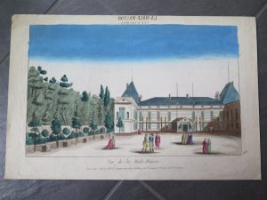 VUE DE LA MALE MAISON, Paris chez J.Chéreau, feuille : 46x30cm, gravure : 39x24cm Vue d'optique du début du XIXe siècle. Gravure naïve d'époque représentant l'empereur et son fidèle Mameluck au premier plan. Très fraîche.