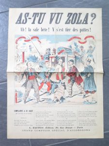 AS TU VU ZOLA? AH LA SALE BÊTE ! Y S'EST TIRE DES PATTES, L.Baudot, 41x57 cm. Affiche sur l'affaire Dreyfus, en couleurs.