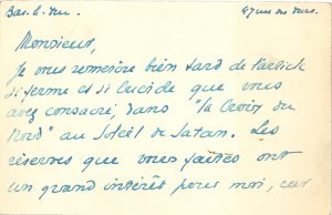 Lettre de remerciement pour l'article si ferme et si lucide parus dans la Croix du Nord sur son roman Sous le soleil de Satan: (...)