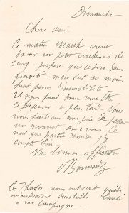 Pierre BONNARD (1867-1947). Peintre. L.A.S. adressée à un ami. Dimanche. 1 p. in-8.
