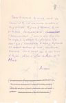 • une copie autographe de Joe Bousquet sur 7 feuillets in-8, à l’encre violette, signée « Aimée » [Marguerite Anzieu], de plusieurs fragments de Sauf votre respect et du Détracteur, romans inachevés de celle qui fut la patiente de Lacan et son sujet de thèse, soutenue en 1932, sur la psychose paranoïaque. Bousquet qui prit connaissance par l’intermédiaire du psychanalyste des textes d’Aimée, pseudonyme choisi par Lacan, les commenta notamment dans la revue 14 rue du Dragon éditée par les Cahiers d’art.