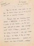 • A Jean Rousselot. Carcassonne, 1er février 1949, 4 pages in-8. Bousquet le félicite pour son poème [paru dans la revue L’Age nouveau] : (…) Pourquoi, vous qui réussissez comme personne, à matérialiser ce qui veut être, à rendre le réel surréel, en lui ajoutant cette part en pleurs dont son efficacité disait l’absence […] pourquoi, naïvement, avec trop d’humilité, employer encore le mot : rêve. Le pas poétique est accompli quand certains mots sont devenus caducs : le mot poésie : le mot amour (…). Il envisage lui aussi une possible collaboration à L’Age nouveau, et si ses contes ne le satisfont pas encore, il pourra envoyer des articles sur Eluard, Jarry, Breton et des extraits du livre sur Max Ernst qu’on vient de lui commander. Il y a aussi des poèmes en prose. Mais surtout… des révélations de mes Journaux intimes. Je suis là, je les relis, je m’interroge devant elles (…).