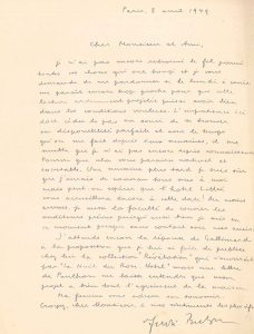 « Je n'ai pas encore retrouvé le fil parmi toutes ces choses qui ont bougé et je vous demande de me pardonner si le lundi à venir me paraît encore trop proche pour que cette lecture ardemment projetée puisse avoir lieu dans les conditions voulues. L'impatience ici doit céder le pas au souci de se trouver en disponibilité parfaite et avec le temps qu'on me fait depuis deux semaines, il me semble que je n'ai pas encore repris connaissance ». Une semaine plus tard, cela serait possible, mais l’hôtel Littré les accueillerait-il encore ?