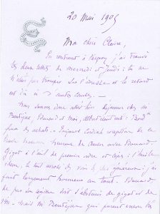 Gustave EIFFEL. 1832-1923. Ingénieur et industriel. L.A.S. à sa chère Claire. Vacquey, 20 mai 1905. 4 pages petit in-8, à l’encre violette, sur un double feuillet à l’en-tête et à la devise du Château de Vacquey.