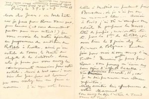 Belle lettre mentionnant l’emploi du temps du musicien préparant El Retablo pour la Princesse de Polignac :