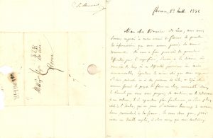 Félicité de LAMENNAIS. 1782-1854. Écrivain philosophe. L.A.S. à Monsieur de Luca. Florence, 23juillet1832. 2 pp. bi-feuillet in-4, adresse au verso, marques postales.