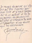 Pierre LOUŸS (1870-1925). L.A.S. Non datée [1897 ?]. 2 pages in-8 ; à l’encre bleue sur un double feuillet à l’adresse imprimée en rouge 147 boulevard Malesherbes. Lettre inédite, à propos d’une illustration d’Aphrodite que Louÿs...