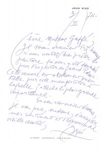 Miro intervient auprès de Madame Gaffé pour qu’elle prête un tableau pour l’exposition du Grand Palais ; (…)