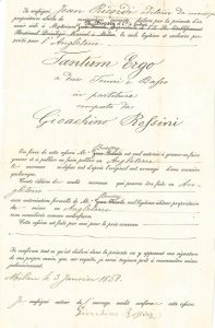 Contrat entre Rossini et les éditeurs de musique Jean Ricordi et Boosey, concernant les droits du Tantum Ergo ; Rossini consent à ce que Ricordi cède les droits de cette partition à l’éditeur anglais pour la publication de l’œuvre.