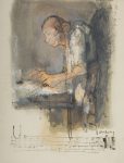 composition abstraite ajourée perpendiculaire faite de box moutarde et citron, dos lisse, doublures et gardes de box moutarde, doubles gardes, tranches dorées, couverture et dos conservés, chemise à dos et bandes à recouvrement de box noir, étui (Cl. Delpierre - K. Vinding. 1987).{CR}{CR}Très belle édition de l'un des 12 récits extrait des Nouvelles exemplaires de Cervantès, dans la traduction de Louis Viardot.{CR}Tirée à 185 exemplaires numérotés sur papier vélin de Hollande Van Gelder, elle est illustrée de 19 lithographies originales en couleurs du peintre Jean JANSEM (1920-2013), dont une sur la couverture.{CR}Précieux exemplaire, entièrement monté sur onglets, dans une reliure originale de Delpierre et Vinding, spécialement imprimé pour Robert Delmas. Il a été enrichi des pièces suivantes :{CR}- aquarelle originale de Jansem sur les deux côtés d'un feuillet volant, {CR}- menu illustré d'une lithographie de Jansem pour l'assemblée générale de la Société des Francs-Bibliophiles donnée à l'Automobile-club de France le 19 mai 1965, {CR}- une des 24 suites complètes sur Auvergne Richar de Bas des lithographies, {CR}- une des 20 suites de 2 lithographies originales de Jansem non utilisées, {CR}- une des 10 progressions de couleurs sur Auvergne Richard de Bas de 2 lithographies originales de l'artiste.{CR}Provenance : Robert Delmas, avec ex-libris.