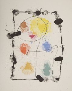 d'édition.{CR}{CR}Très belle édition illustrée de 9 lithographies originales de Joan MIRÓ (1893-1983) dont une sur l'étui-boîte, une sur la couverture et 7 à pleine page.{CR}Tirage à 145 exemplaires signés par l'artiste ; celui-ci un des 20 hors commerce pour les collaborateurs, très bien conservé.{CR}Premier plat de l'étui légèrement bruni.