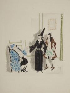 Demi-chagrin vert sombre à coins, filets dorés, dos à nerfs, tête dorée, non rogné, couverture et dos conservés (reliure de l'époque).{CR}{CR}Édition tirée à 375 exemplaires numérotés sur vélin d'Arches, illustrée de 24 eaux-fortes originales en couleurs de Maurice LEROY.{CR}Un des 202 exemplaires numérotés de 149 à 350, celui-ci ENRICHI DE DEUX AQUARELLES ORIGINALES DE MAURICE LEROY de deux des illustrations du livre : " Toinette avec Cléante et Argan " (acte II) et " la consultation de Toinette " (acte III).{CR}Exemplaire parfaitement conservé, provenant de la collection de l'acteur, metteur en scène et historien du théâtre Jacques Lorcey (né en 1938).{CR}Provenance : Jacques Lorcey, avec ex-libris.