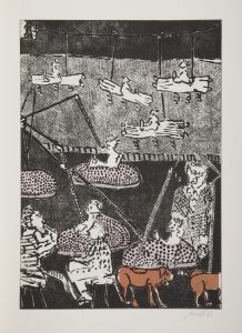 le premier livre illustré par l'artiste peintre et graveur Gaëlle PELACHAUD (née en 1962). Composée d'extraits de Pierrot mon ami de Raymond Queneau, elle comprend 14 eaux-fortes originales en couleurs à pleine page tirées sur la presse de l'artiste.{CR}Chaque feuillet de texte est en partie découpé, faisant ainsi apparaître un morceau de l'illustration qui figure en regard. L'édition débute par une préface d'Abidine Dino et se termine par Sept textes brefs pour Pierrot mon ami par Gilbert Lascault.{CR}Tirage à seulement 60 exemplaires numérotés et signés par l'artiste sur papier vélin d'Arches, celui-ci étant l'un des 50 numérotés en chiffres arabes.{CR}Quelques salissures à l'étui sinon exemplaire parfaitement conservé.