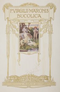 à rabats d'éditeur.{CR}{CR}Très belle édition des Églogues de Virgile, illustrée dans le style Art nouveau, d'un titre, d'un portrait de Virgile, de 10 en-têtes, 10 culs-de-lampe, 10 faux titres et de beaux encadrements à chaque page de texte, composés par Adolphe GIRALDON (1855-1933) et gravés sur bois en couleurs par Florian.{CR}Tirage limité à 336 exemplaires ; celui-ci étant l'un des 280 sur papier d'Arches, enrichi du prospectus de parution.{CR}Étui légèrement sali. Petite déchirure sans manque au bas de la couverture.