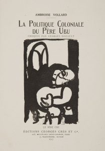 VOLLARD (Ambroise) - ROUAULT (Georges).{CR}La Politique Coloniale du Père Ubu.{CR}Paris : Georges Crès et Cie, 1919. - Plaquette in-8, 252 x 165 : 29 pp., (1 f.), couverture illustrée. Broché.{CR}{CR}Édition originale de l'une des suites...