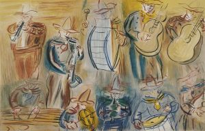originale de ce texte sur la musique de Jean Witold, illustrée de 28 compositions de Raoul DUFY dont 2 lithographies originales en couleurs portant le timbre à sec de l'éditeur et 6 illustrations en couleurs sur double page.{CR}Précieux exemplaire nominatif, hors commerce, imprimé sur japon nacré pour Monique de Tartas.{CR}Il a été spécialement enrichi d'une suite des doubles planches en couleurs sur grand vélin d'Arches, d'une suite des doubles planches en noir sur papier à la main du Moulin Richard de Bas, de 2 planches refusées sur grand vélin d'Arches et d'une suite sur vélin d'Arches des illustrations en noir (manque celle de la page 47).{CR}Quelques rares rousseurs éparses.