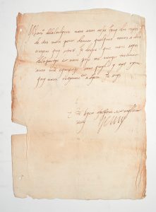 Lettre adressée par le Roi de Navarre, futur Henri IV, à Louis de Saligné, Seigneur de La Lardière et de Badiolle, Lieutenant de Roi en Haut-Poitou († 1620), dans laquelle il prie son correspondant de le rejoindre avec son équipage, lui déclarant à ce propos pour le convaincre :