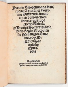 Cracouien//sis Poznaniensis Cano//nici. et P. D. // Epicedion : // eiusdemque // Epita-//phia. [In fine :] Impressum Cracouie Impensis prouidi viri // domini Joannis Haller […] Anno domini Millesimo quingentesimo // decimo [Cracovie, Jean Haller, 1510].