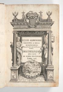 [ORNITHOLOGIE]. ALDROVANDI (Ulysse). Ornithologiæ hoc est De Avibvs historiæ libri XII. Bononiæ [Bologne], Ex Camerali Typographia Manolesiana, 1681. In-folio (240 x 358 mm), vélin ivoire de l’époque, titre à l’encre sur la tranche de...
