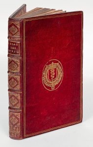 les plats, armoiries au centre, dos à nerfs orné, tranches dorées (reliure de l’époque).