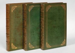 Ensemble 3 volumes grand in-8°, maroquin vert à grain long, quadruple filet doré encadrant les plats, fleuron aux angles, dos à nerfs orné, tranches dorées (Bound by C. Smith).