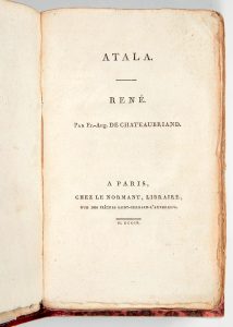 CHATEAUBRIAND (François René de). Atala. René. À Paris, Chez Le Normant, Libraire, 1805. In-12 broché, couv. muette, chemise en demi-maroquin rouge à dos lisse orné et étui.