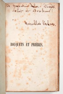 « A Monsieur Alex. Dumas, salut et bonheur ! Marcelline Valmore. »