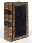 fine roulette dentelée dorés encadrant les plats, dos à petits nerfs orné, tranches dorées, gardes de moire citron (Relié par Simier).