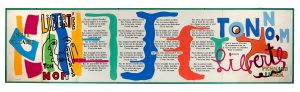 ÉLUARD (Paul) & LÉGER (Fernand). « Liberté J’écris Ton Nom ». S. l. [Paris], Seghers, n. d. [1953]. Dépliant en accordéon à huit plis (27,8 x 110 cm), sous verre.