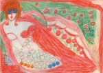 ALOÏSE. (Aloise CORBAZ) DESSIN ORIGINAL DOUBLE FACE AU PASTEL. 20,5 x 15 cm sous encadrement. Deux pastels originaux d'Aloïse, figure importante de l'Art Brut. Au recto, une femme allongée et au verso, un couple de femmes