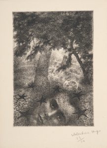 Un des 25 premiers exemplaires sur Vieux Japon, numéroté et signé par l'éditeur Guy Levis Mano, les seuls contenant les 5 pointes sèches originales de Valentine Hugo, tirées par elle-même, toutes justifiées et signées.