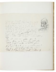 1 page autographe de Salvador Dali adressée en français à Gala et illustrée d'un dessin original de Dali.