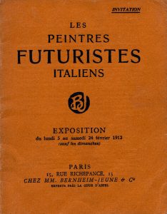 [FUTURISME ITALIEN]. LES PEINTRES FUTURISTES ITALIENS. Paris, Bernheim Jeune, 1912. In-12 agrafé. Edition originale du catalogue de la première exposition des peintres futuristes italiens à Paris: Boccioni, Carra, Russolo, Balla et Severini.