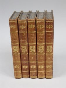 Voyage du Maréchal Duc de Raguse en Hongrie, en Transylvanie, dans la Russie méridionale, en Crimée.mer d'Azoff, à Constantinople..Asie mineure, en Syrie, en Palestine et en Egypte Paris, Ladvocat, 1837, 5 vol in 8°, ½ veau époque dos lisse orné