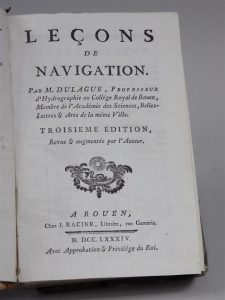 Dulague - Leçons de navigation - Rouen, J. Racine, 1784, in 8°, ½ veau époque accidenté, pièce de titre, 7 pl dépl (reliure en l'état)