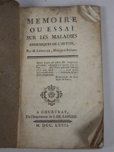 [Artois] Leroulx, médecin à Béthune - Mémoire ou essai sur les maladies endémiques de l'Artois - Courtray, J de Langhe, 1767, in 12°, broché, 82pp Rare