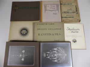 Catalogues et album de bronzier luminaire -Bronze d'éclairage ; R. Cottin et fils, Paris, vers 1900-1920 - Studium Louvre, 1923, plaquette - J. Béchu - Album de cuivres et ferrures de style, 1914, gd in 8° - Album des bronzes français - Fer...