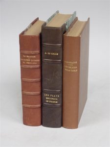 provinces françaises Paris, Montaigne, 1928, 443pp, ½ chagrin Prosper Montagné - Les délices de la table ou les quatre saisons gourmandes - 800 recettes et menus 382pp, Paris, Flammarion, 1931, in 12°, carré Envoi autographe de l'auteur Pleine percaline marron