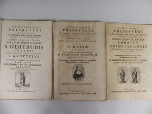 Antonü Sanderi - Chorographia sacra nobilis et antiqui coenobü S. Gertudis lovani Bruxelles, Vleugartium, 1659, in folio, 9pp, pl dépl Du même - Chorographia sacra beginagü bruxellensis de vinea S. Mariae Bruxelles, Vleugartium, 1659, in folio,...