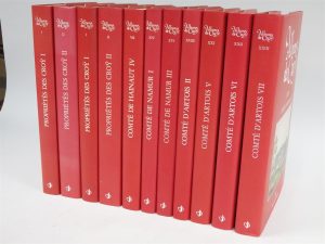 Album de Croy - Propriétés des Croy I et II (2 ex) ; VU (Hainaut IV), XIV et XVI (Namur I et III),XVIII, XXI, XXII, XXIII (Comté d'Artois, II, V, VI, VII) In folio, relié simili velin sous jaquette Exceptionnelle documentation sur le portrait de...
