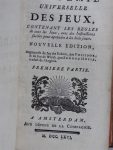[Jeux] Académie universelle des jeux contenant les règles de tous les jeux, avec des instructions faciles pour apprendre à bien jouer Augmentée du jeu des échecs par Philidor et du jeu du whist par Edmond Hoyle Amsterdam, aux dépens, 1766, in...