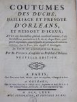 Pothier - Coutumes des duchés, bailliage et prévôté d'Orléans et ressort d'iceux A Paris, chez Debure, Orléans, Vve Rouzeau, 1770, in 4°, 890pp, pl veau époque (dos accidenté avec manque), intérieur frais