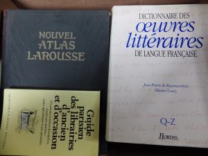 Carton Dictionnaire des ouvres littéraires 4 vol Nouvel atlas Larousse ; Robert, etc..