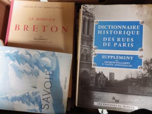 Carton régionalisme Dictionnaire historique des rues de Paris Images du Calvados ; Le mobilier breton ; Volumes régionaux, éditions Arthaud ( Provence, Rouen Savoie, etc.)