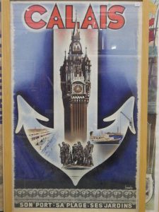 Calais - Laszlo Composition dans une ancre marine servant de réserve aux éléments emblématiques de l'identité de Calais. Bandeau simulant la dentelle Imp.R.Deligne, Paris 95 x 134 cm (Doublée sur papier, accidents et restauration, encadrée...
