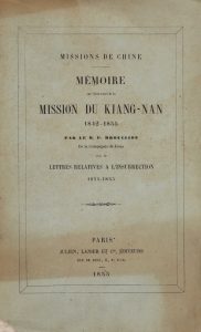 [Chine]. BROULLION (Nicolas). Mission de Chine. Mémoires sur l'état actuel de la mission du Kiang-Nan. 1842-1855. Suivi de Lettre relatives à l'insurrection. 1851-1855. Paris, Julien, Lanier, 1855. In-8, 487 p., broché (mouillures claires en fin...