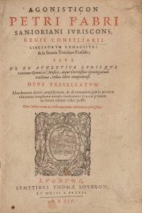 [Livre du XVIe s.]. DU FAUR DE SAINT-JORRY (Pierre). Agonisticon Petri Fabri… sive De re athletica ludisque veterum gymnicis, musicis, atque circensibus spicilegiorum tractatus, tribus libris comprehensi. Lugduni, sumpt. T. Soubron, 1595. In-4,...