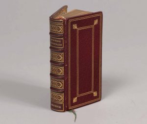 grenat, dos à 5 nerfs finement orné, titre et date dorés, décor des plats à la Duseuil, filet doré aux coupes, roulettes intérieures, tranches dorées (qq. rares brunissures).