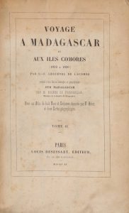 LEGUEVEL DE LACOMBE (B.-F.). Voyage à Madagascar et aux îles Comores (1823 à 1830), précédé d'une notice historique et géographique sur Madagascar, par M. Eugène de Froberville. Avec un atlas de huit vues et costumes dessinés par V. Adam, et...