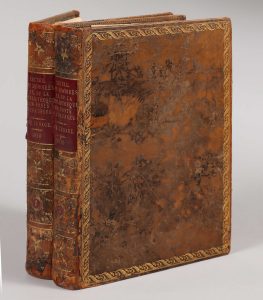 Avec une riche iconographie qui comprend : 1. deux portraits-frontispices gravés (le premier, celui de Perronet, appartenant à l'édition ; le second, celui de Lesage, ayant été ajouté), répétés au début du volume II ; 2. 34 planches gravées, la plupart en dépliant, toutes sous serpentes ; 3. une grande planche dépliante ajoutée (Pont projeté pour être construit à Saint-Pétersbourg, sur la Néva) ; exemplaire dans lequel la planche XVII de la première partie n'a pas été répétée dans la seconde, contrairement aux indications pour le relieur.